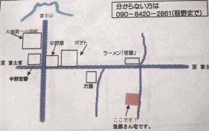 元西富士料金所出口ガスト先にある一方通行の道を左折して数メートル進んだ左側です