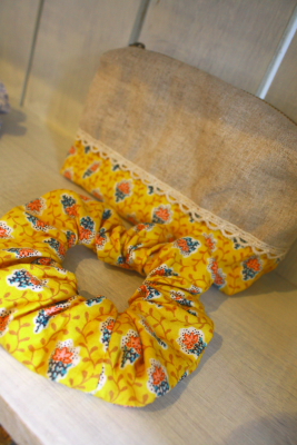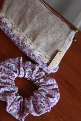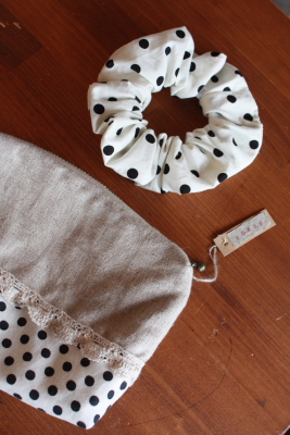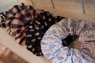 ポーチ&シュシュのセットと単品シュシュ。