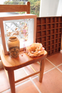 窓越しのチャイルドチェアと一緒に飾ってみました。